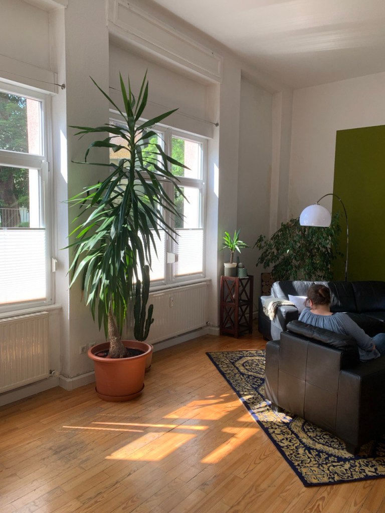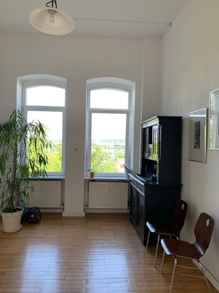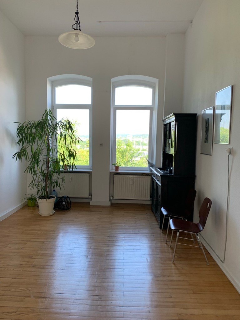 Die Räume haben eine Deckenhöhe von 4 Metern, sind mit Parkettboden und schönen, großen Fenstern ausgestattet.